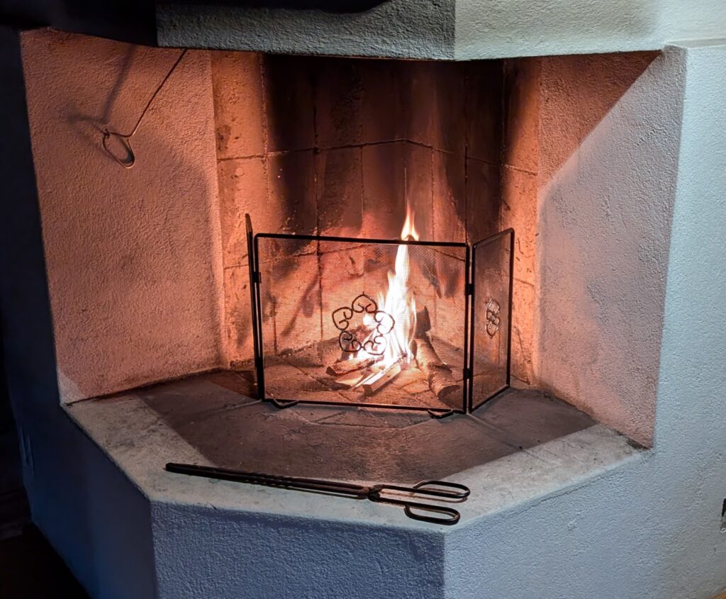 In twee van de blokhutten kan een open haard gestookt worden. Belangrijk hierbij is om voorzichtig met het vuur om te gaan! Alles in de blokhutten is van hout gemaakt, dus brandgevaar is aanwezig.